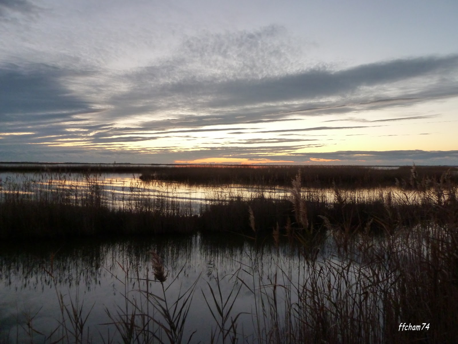 Le long du canal, bateaux et péniches attendent le crépuscule naissant